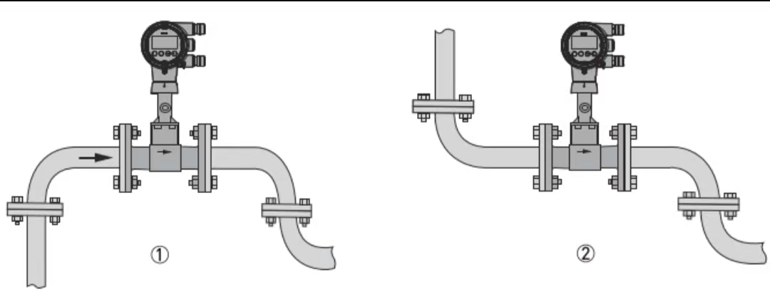 4.Khi đo môi trường có nhiệt độ cao, các nhà sản xuất thường cung cấp lưu lượng kế xoáy loại phân chia. Đối với lưu lượng kế xoáy tích hợp, hướng của máy phát phải được xác định dựa trên nhiệt độ của môi trường. Ví dụ: khi đo hơi nước ở nhiệt độ cao, bộ phát phải được đặt sang một bên hoặc hướng xuống dưới (một số nhà sản xuất không khuyến nghị lắp đặt hướng xuống dưới vì chất lỏng có thể xâm nhập vào đầu bộ phát).